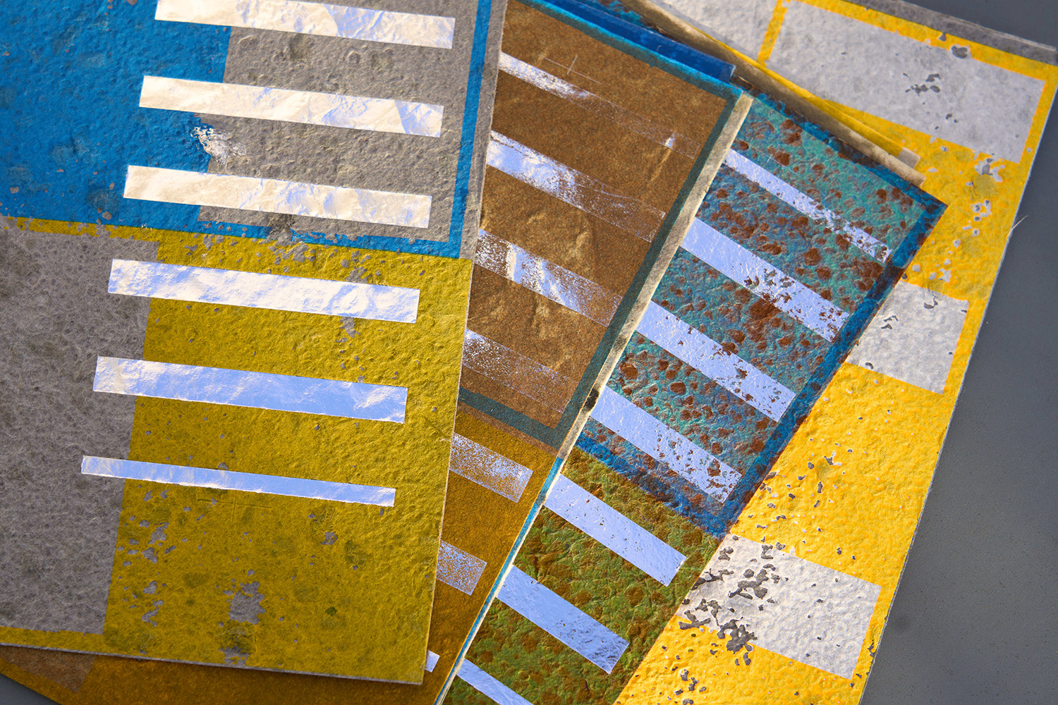 表紙となる和紙は錆、石、水面などをイメージした全6種類で、
